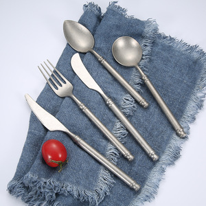 Restaurante Hotel Juego de cubiertos de lujo Boda Occidental Mate Plata Cuchillo Tenedor Cuchara Cubiertos de acero inoxidable