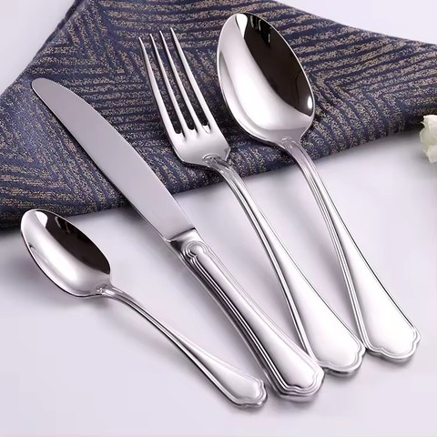 Thickened High Quality Stainless Steel Hot Simple Restaurant Hotel Unique Handle Custom Tableware Set