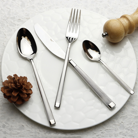 TNT Factory Restaurant Tableware Wholesale 18-10 Cutlery Set Classic Stripe 304 Stainless Steel Cutlery