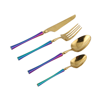 Yüksek dereceli altın metal bıçak ve çatal yüksek kaliteli paslanmaz çelik beş renk kolu sofra seti