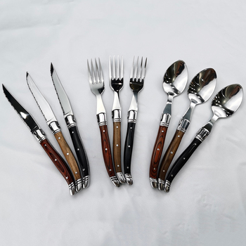 Ahşap saplı paslanmaz çelik çatal bıçak ve çatal oteller için restoran kamp